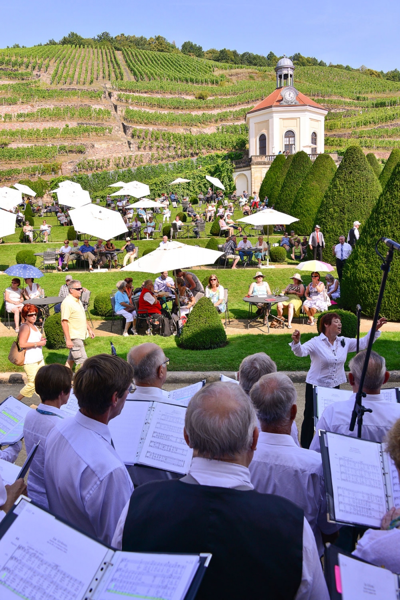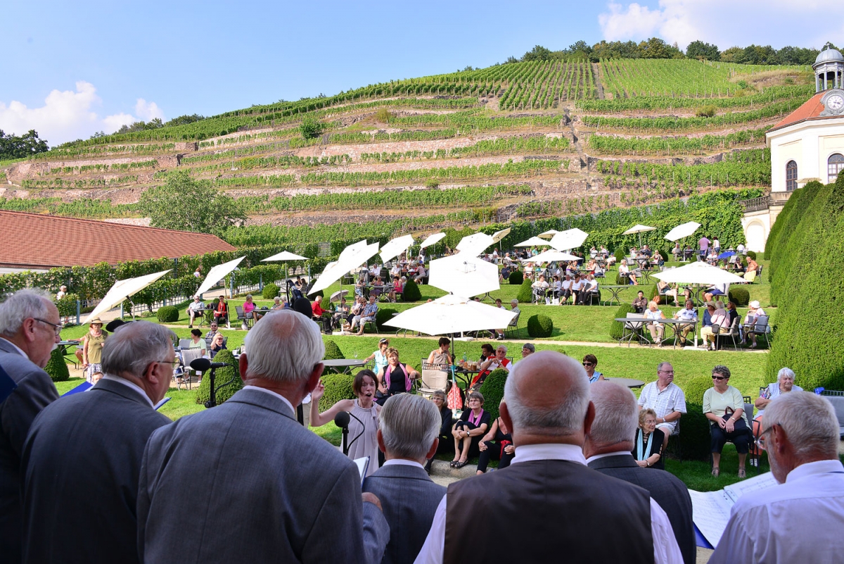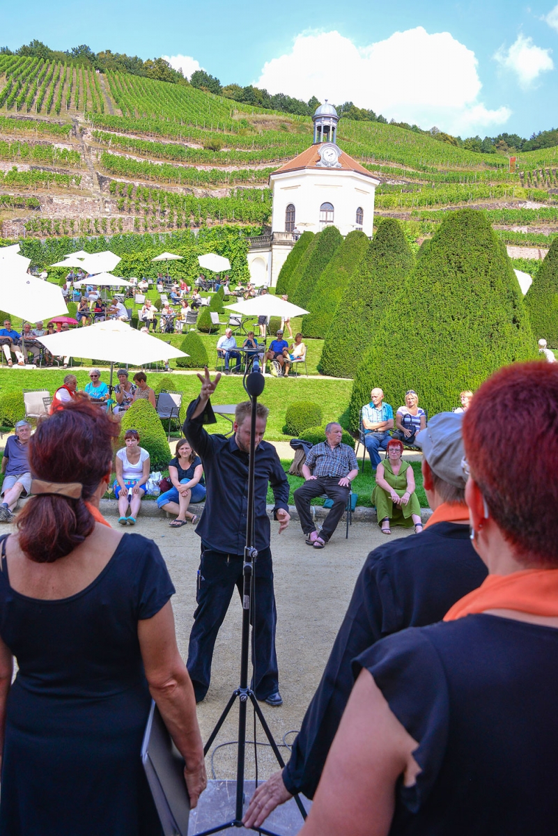 Am 11. September 2016 treffen sich Chöre vorwiegend aus Ostsachsen am Schloss Wackerbarth, um ab Mittag bis zum Abend beim Federweißerfest mit ihrem Gesang zahlreiche Gäste im wunderschönen Garten zu unterhalten. Das Chorsingen findet nun bereits zum 12. Mal auf Schloss Wackerbarth statt.